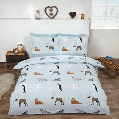 Rapport Home Winter Animals 100% Brushed Cotton Duvet Set, Single Ice