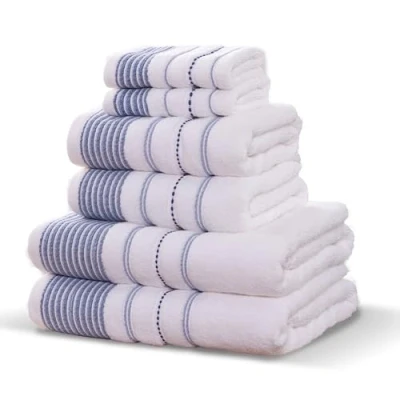 Rapport HomeDakota Stripe 6 Piece Towel Bale Luxurious 100% Cotton 500gsm Bathroom Set, Blue