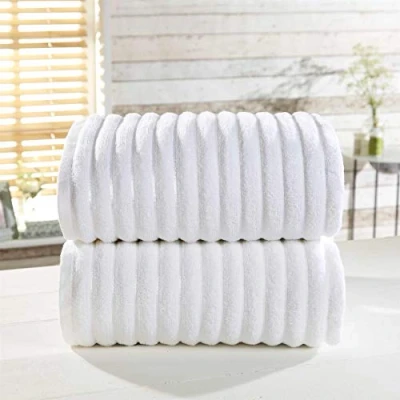 Rapport Ribbed 2 Piece 100% Cotton Towel Set, White, Bath Sheet 90 x 140cms(2 140cms)