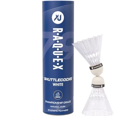 DURABLE CONSTRUCTION - Raquex Shuttlecocks come in a tube of 6 and are built to last, featuring a composite cork ball head and a robust nylon shuttle frame. The synthetic nylon feathers provide exceptional durability, ensuring longevity and consistent performance during every game. PREMIUM, ALL NATURAL CORK HEAD - Unlike cheaper alternatives, Raquex badminton shuttlecocks boast a natural cork ball head. This premium feature enhances the flight and feel of each shot, providing players with a superior playing experience and increased control over their game. BALANCED WEIGHT, OPTIONAL SPEEDS – Weighing just 5.3g each, and three speed options: 77 Medium, 78 Fast, 79 Very fast. Raquex’s nylon shuttlecocks strike the perfect balance between agility and stability, contributing to a consistent and reliable flight, perfect for players of all skill levels, including beginners. VERSATILE INDOOR OUTDOOR PLAY - Whether you're practising indoors, training on the badminton court, engaging in school sports, or enjoying recreational badminton play outdoors, Raquex badminton shuttlecocks are suitable for various playing environments. UK SPORTS BRAND – Raquex is a UK sports brand that specialises in racquet sports and offers premium quality sports products and gift sets for both professional athletes and those who enjoy sports as a leisurely pastime or outdoor activity. All Raquex products are designed and stocked in the UK.