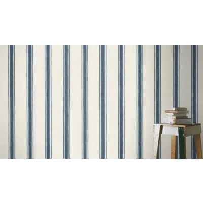 Rasch Lirico Collection 555646 Non Woven Wallpaper with Stripes in White and Blue