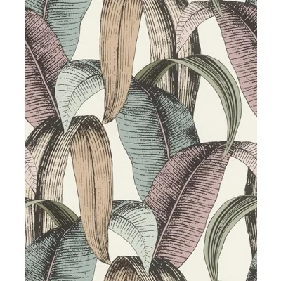 Rasch Tapeten 867961 Non Woven Wallpaper with Banana Leaves in Beige, Pink, Mint, Green, Black and White from The Symphony Collection 10.05 m x 0.53 (L W)