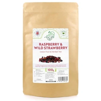 Raspberry & Wild Strawberry Loose Tea Refreshing Fruit and Herbal with Hibiscus Rose Peel Raisins Chokeberry (100g)