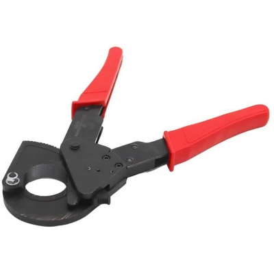 General description This ratchet cable cutter is designed for efficient and clean cutting of copper, aluminum, and steel wire armoured (SWA) cables. It is suitable for professional electricians, telecoms engineers, machine service technicians, and serious DIY enthusiasts. The tool is not intended for cutting live electrical wires or catenary cables. Technical specifications Length: 250mm Cutting capacity: up to 30mm diameter for copper and aluminum cables Cutting capacity: up to 20mm for steel wire armoured cables Hardened and tempered steel blades at HRC 54 for durability Compatibility and accessories Compatible with copper, aluminum, and steel wire armoured cables Not suitable for catenary cables or live electrical wires Installation No installation required; ready to use out of the box Usage Place the cable into the cutting jaws Use the ratchet mechanism to progressively tighten until the cable is cut Press the release lever to free the blade from the cable at any point during
