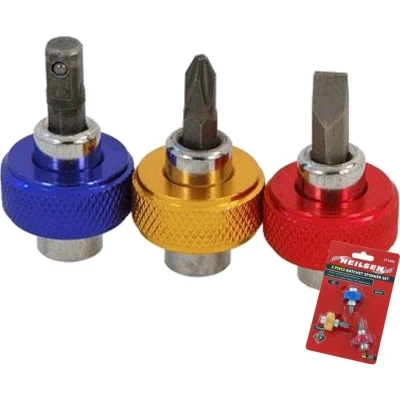 General description The Neilsen Ratchet Spinner Magnetic Bit Holder 1/4' Drive Thumb Wheel 3pc Set is designed for versatility and ease of use. This set includes a 1/4 inch drive ratchet spinner and a magnetic bit holder, making it ideal for various DIY and home improvement tasks. Technical specifications Drive Size: 1/4 inch Bit Type: 1/4 inch hex magnetic bit adapter Included Bits: Flat 1/4 inch and Philips Ph2 - 25mm Socket Adapter: 1/4 inch