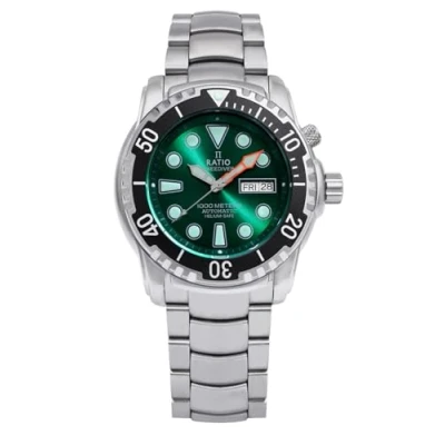 RATIO FreeDiver Helium Safe Dive Watch Sapphire Crystal Analog Green Dial Japanese Automatic Diver 1000M Water Resistant Diving for Men (Green)