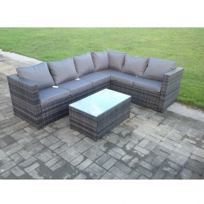 Rattan Corner Sofa Set Rectangular Oblong Coffee Table Outdoor Garden Furniture In Grey Mix 6 Seater With Seat And Back Cushion Right Hand Fimous
