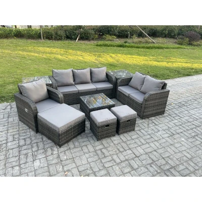 Rattan Garden Furniture 9 Piece Patio Set With Table Sofa Square Coffee Reclining Chair Loveseat Side 3 Seater Footstools 2