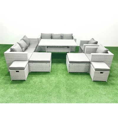 Rattan Garden Furniture Dining Set 12 Seater Lounge Sofa Chair Table with 4 Footstools Light Grey Mixed Fimous