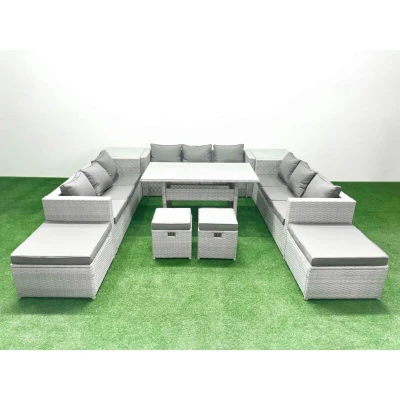 Rattan Garden Furniture Dining Set 13 Seater Lounge Sofa Table with 4 Footstools 2 Side Tables Light Grey Mixed Fimous