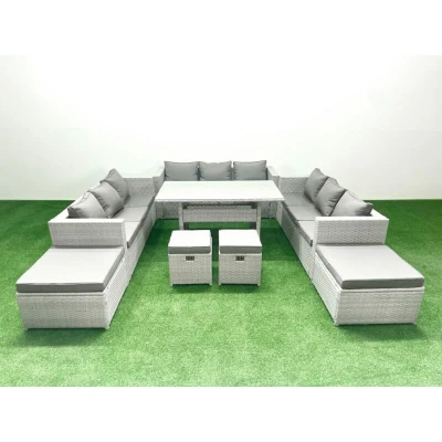 Rattan Garden Furniture Dining Set 13 Seater Lounge Sofa Table with 4 Footstools Light Grey Mixed Fimous
