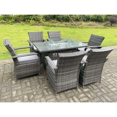 Rattan Garden Furniture Gas Fire Pit Rectangle Round Dining Table And Chairs 6 Seater + Rectangular Fimous