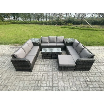Rattan Garden Furniture Set 12 Seater Indoor Outdoor Patio Sofa with Coffee Table 3 Footstools 2 Side Tables Dark Grey Mixed Fimous