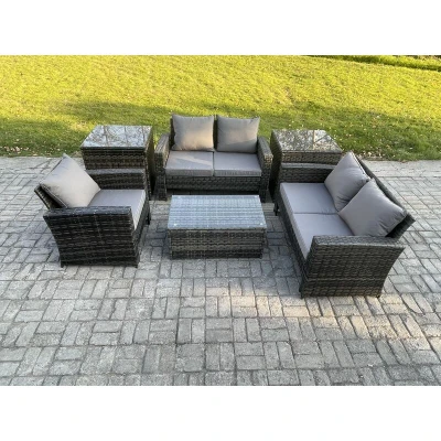 Rattan Garden Furniture Set 5 Seater Patio Outdoor Lounge Sofa Chair with 2 Side Tables Rectangular Coffee Table Dark Grey Mixed Fimous