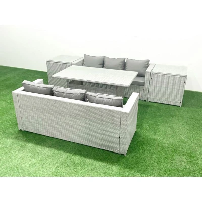 Rattan Garden Furniture Set 6 Seater Outdoor Sofa with Dining Table 2 Side Tables Light Grey Mixed Fimous