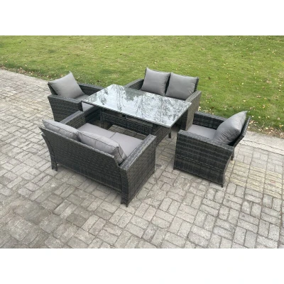 Rattan Garden Furniture Set 6 Seater Patio Outdoor Lounge Sofa with Oblong Dining Table Double Seat Dark Grey Mixed Fimous