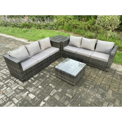 Rattan Garden Furniture Set 6 Seater Patio Outdoor Lounge Sofa with Side Table Square Coffee Dark Grey Mixed Fimous