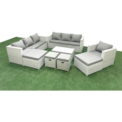 Rattan Garden Furniture Set 8 Pieces Outdoor Sofa Chair Coffee Table with 4 Footstools Light Grey Mixed Fimous