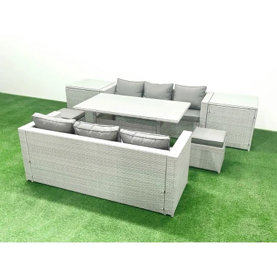 Rattan Garden Furniture Set 8 Seater Outdoor Sofa with Dining Table 2 Side Tables Small Footstools Light Grey Mixed Fimous