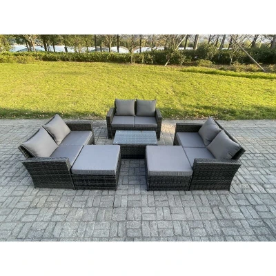 Rattan Garden Furniture Set 8 Seater Patio Outdoor Lounge Sofa with Rectangular Coffee Table 2 Big Footstool Dark Grey Mixed Fimous