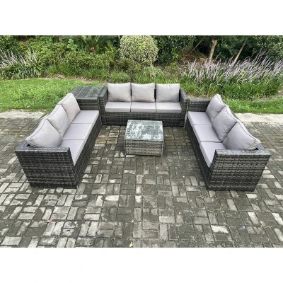 Rattan Garden Furniture Set 9 Seater Patio Outdoor Lounge Sofa with Side Table Square Coffee Dark Grey Mixed Fimous