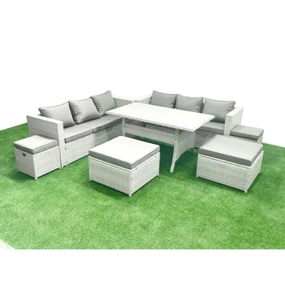 Rattan Garden Furniture Set Outdoor 10 Seater Patio Dining Sets with Glass Top Table Light Grey Mixed Fimous