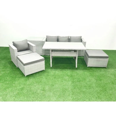 Rattan Garden Furniture Set Outdoor 6 Seater Patio Dining Sets with Glass Top Table and Side Light Grey Mixed Fimous