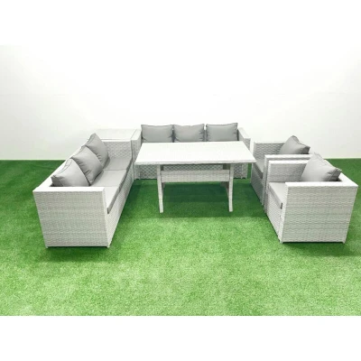 Rattan Garden Furniture Set Outdoor 8 Seater Patio Dinin g Sofa Sets with Dining Table 2 Chairs Side Light Grey Mixed Fimous