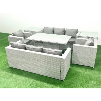 Rattan Garden Furniture Set Outdoor 8 Seater Patio Dinin g Sofa Sets with Dining Table 2 Chairs Side Tables Light Grey Mixed Fimous