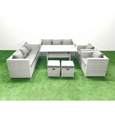 Rattan Garden Furniture Set Outdoor 8 Seater Patio Dinin g Sofa Sets with Dining Table 2 Chairs Small Footstools Light Grey Mixed Fimous