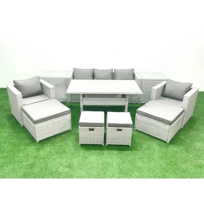 Rattan Garden Furniture Set Outdoor 9 Seater Patio Dining Sets with Glass Top Table and 2 Side Tables Light Grey Mixed Fimous