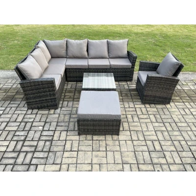 Rattan Garden Furniture Set Outdoor Lounge Corner Sofa With Square Coffee Table Big Footstool Armchair 8 Seater Dark Grey Mixed Fimous