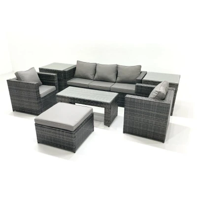 Rattan Garden Furniture Set Outdoor Lounger Sofa with Coffee Table 2 Armchair Big Footstool Side Tables Dark Grey Mixed Fimous