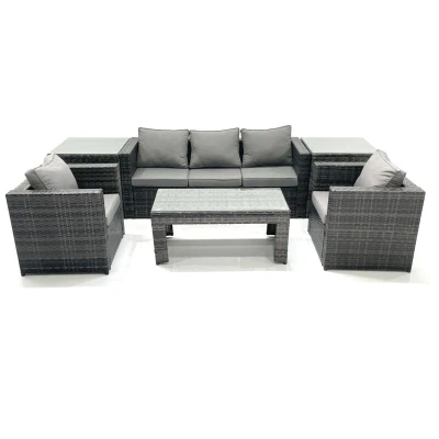 Rattan Garden Furniture Set Outdoor Lounger Sofa with Coffee Table 2 Armchair Side Tables Dark Grey Mixed Fimous