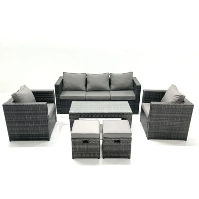 Rattan Garden Furniture Set Outdoor Lounger Sofa with Coffee Table 2 Armchair Small Footstools Dark Grey Mixed Fimous
