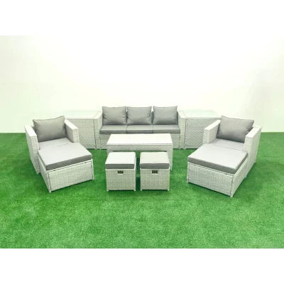 Rattan Garden Furniture Set Outdoor Lounger Sofa with Coffee Table 4 Footstools 2 Side Tables Light Grey Mixed 9 Seater Fimous