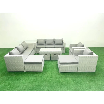 Rattan Garden Furniture Set Outdoor Lounger Sofa with Coffee Table 4 Footstools Side Light Grey Mixed Fimous