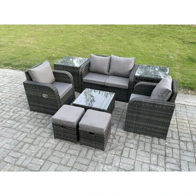 Rattan Garden Furniture Set Patio Conservatory Indoor Outdoor 8 Piece with Love Sofa Square Coffee Table 2 Small Footstools Side Tables Fimous