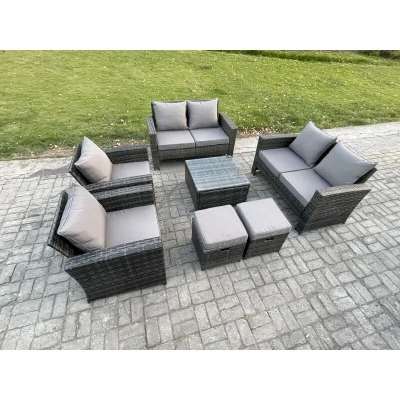 Rattan Garden Furniture Set Patio Outdoor Lounge Sofa with Square Coffee Table Double Seat 2 Small Footstools Dark Grey Mixed Fimous