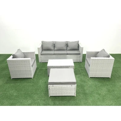 Rattan Garden Furniture Set with 3 Seater Sofa 2 Chair Rectangular Coffee Table Big Footstool Light Grey Mixed 6 Fimous