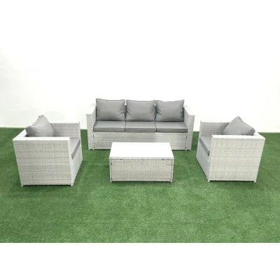 Rattan Garden Furniture Set with 3 Seater Sofa 2 Chair Rectangular Coffee Table Light Grey Mixed 5 Fimous