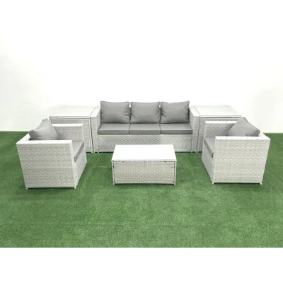 Rattan Garden Furniture Set with 3 Seater Sofa 2 Chair Rectangular Coffee Table Side Tables Light Grey Mixed 5 Fimous