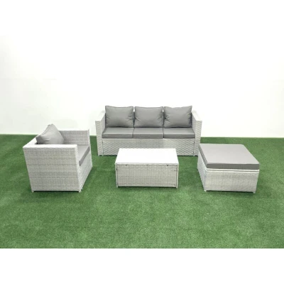 Rattan Garden Furniture Set with 3 Seater Sofa Chair Rectangular Coffee Table Big Footstool Light Grey Mixed 5 Fimous