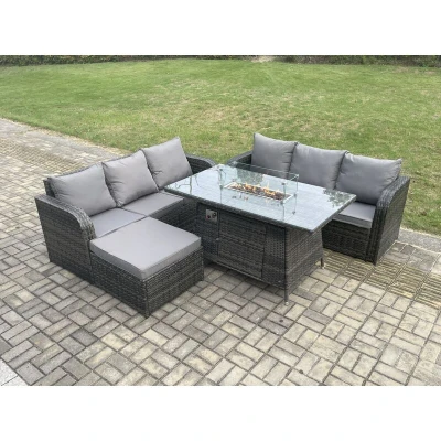Rattan Garden Furniture Set with Fire Pit Table 7 Seater Outdoor Patio Lounge Sofa Dark Grey Mixed Fimous