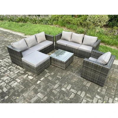 Rattan Garden Furniture Sofa Set with Armchair Square Coffee Table Big Footstool Indoor Outdoor 8 Seater Dark Grey Mixed Fimous