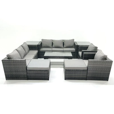 Rattan Garden Furniture Sofa Set with Coffee table Armchair 2 Side Tables Big Footstools Dark Grey Mixed Fimous