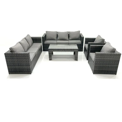 Rattan Garden Furniture Sofa Set with Coffee table Armchair Dark Grey Mixed Fimous