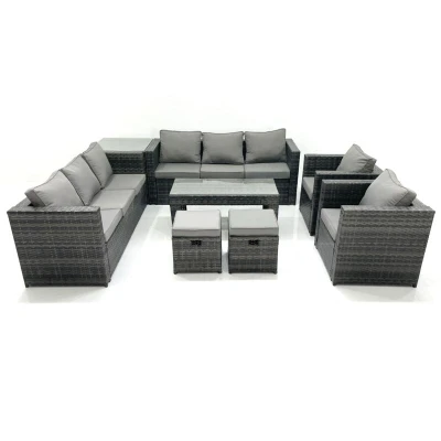 Rattan Garden Furniture Sofa Set with Coffee Table Armchair Side 2 Small Footstools Dark Grey Mixed Fimous