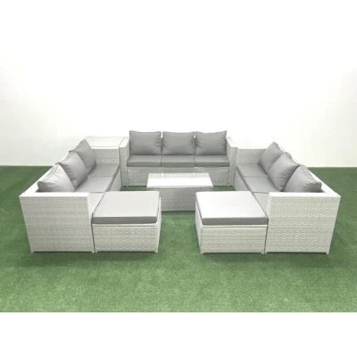 Rattan Garden Outdoor Furniture Set 11 Seater Sofa Coffee Table with 2 Big Footstools Side Light Grey Mixed Fimous