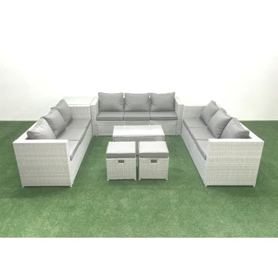 Rattan Garden Outdoor Furniture Set 11 Seater Sofa Coffee Table with 2 Small Footstool Side Light Grey Mixed Fimous